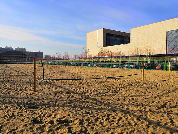 The beach volleyball court is located on the west side of the citizen sports fitness square, with a length of 170 meters in the north and south, with a width of 30 meters in the east and west. It covers an area of 5100 square meters which can display three beach football fields, six beach volleyball fields or two beach handball fields.During the construction period, the project department upholds the principle of "high standards and strict requirements", strictly controls the quality of raw materials, uses new sand screening machine and ensures the fineness of sand used for paving to build a site that meets the national single competition standard, fully considers the integration of resources to achieve a multi-purpose use.