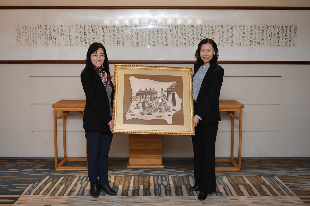At 9 a.m., accompanied by Tian Guofeng and Pan Hebin, Chen Chunyan, Director of Jinan Dacheng Art Museum, led our group to visit Dacheng Art Museum in Jinan Urban Construction Group. Dacheng Art Museum is an artistic place and cultural industry project created by Jinan Urban Construction Group. It is open free to the public and art fans after the completion, which reflects the corporate social responsibility and participation in cultural construction. Curator Chen kept two traditional African paintings presented by my group in the museum.