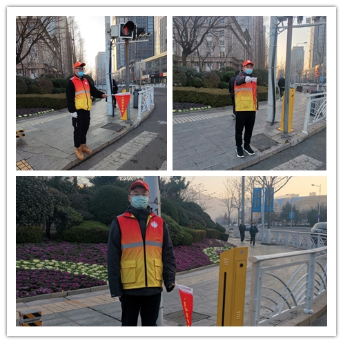 正值寒冬時節(jié),集團志愿服務隊的志愿者不畏嚴寒七點準時到崗,著統(tǒng)一志愿服裝、手持引導旗引導市民過馬路,對闖紅燈、亂穿馬路、不按規(guī)定道路行駛等影響交通秩序和行車安全的各類不文明行為進行勸導。